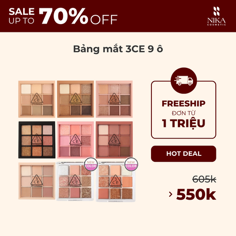 - Bảng Phấn Mắt 9 Ô 3CE Multi Eye Color Palette với thiết kế kiểu dáng 9 ô xinh xắn, nhỏ gọn nhưng cầm chắc tay. Bao bì được thiết kế màu sắc đồng màu với hộp phấn, phần nắp trong suốt giúp bạn quan sát chất phấn cũng như màu sắc bên trong dễ dàng hơn.