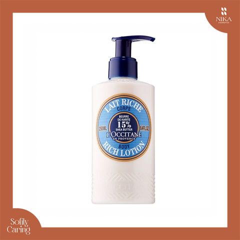 Sự kết hợp tuyệt vời giữa dưỡng ẩm tối ưu và thành phần tự nhiên, Sữa Dưỡng Thể Loccitane Shea Butter 15% Body Rich Lotion 250ML là bí quyết giữ cho làn da mềm mại, trẻ trung và mịn màng. Được chiết xuất từ 15% bơ hạt mỡ Shea, sản phẩm là một điểm nhấn trong việc nuôi dưỡng da khô ráp và cung cấp sự mịn màng không gì sánh bằng.