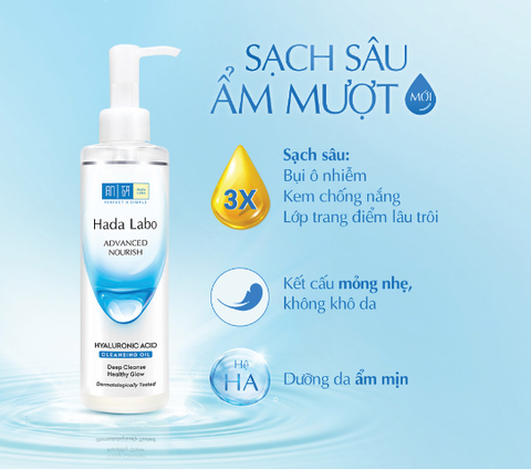 Dầu tẩy trang Hada Labo Advanced Nourish Hyaluronic Acid Cleansing Oil là sản phẩm tẩy trang và dưỡng ẩm cấp nước hiệu quả cho làn da. Với công thức độc quyền chứa axit hyaluronic và các thành phần thiên nhiên, sản phẩm này sẽ giúp bạn loại bỏ hoàn toàn lớp trang điểm và bụi bẩn, đồng thời cung cấp độ ẩm dưỡng sâu cho da.