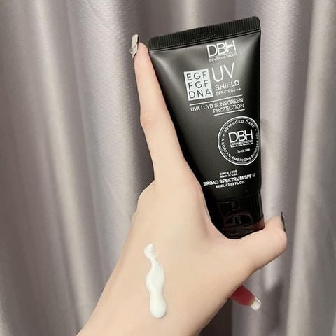 - Kem chống nắng DBH với công nghệ tiên tiến chứa EGF giúp chống nắng, làm căng bóng và dưỡng da.
