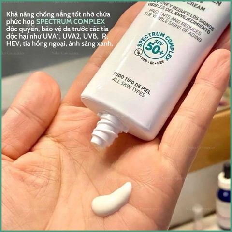 - Phức hợp Spectrum Complex: bao gồm màng lọc chống nắng Encapsulated Sunscreens, chiết xuất tiền Vitamin A, chiết xuất Cocoa giúp bảo vệ da toàn diện khỏi tia UVA1, UVA2, UVB, IR, HEV.