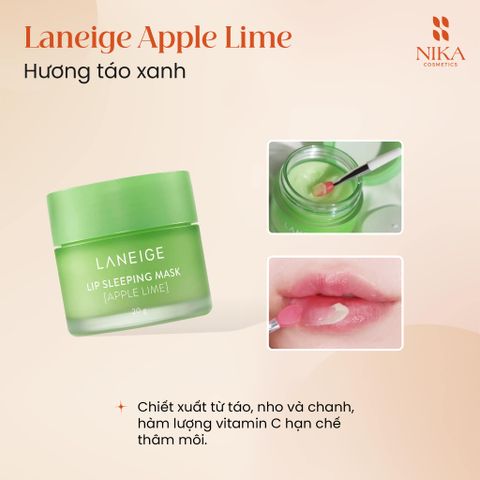 Mặt nạ ngủ dưỡng ẩm môi Laneige Lip Sleeping Mask chứa các thành phần giàu dinh dưỡng giúp lấy đi các tế bào chết và dưỡng ẩm trên môi vào ban đêm mang đến đôi môi mềm mại và mịn màng hơn vào sáng hôm sau kết hợp với hương trái cây ngọt ngào tạo cảm giác dễ chịu thuộc thương hiệu Laneige đến từ Hàn Quốc