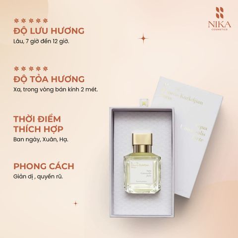 Nước hoa Maison Francis Kurkdjian Aqua Universalis Forte mang trong mình một sự tươi tắn như ánh nắng ban mai của mẫu nước hoa Aqua Universalis gốc, nhưng đã được thêm vào các nốt hương cam chanh để trở nên rạng rỡ hơn. Sứ quý phái của lớp hương hoa cỏ trong nước hoa được củng cố thêm nhờ vào các nốt hương hoa nhài Ai Cập hiếm và hoa hồng Ma-rốc.