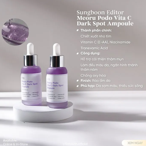 Serum Sungboon Editor Meoru Podo Vita C Dark Spot Ampoule là sản phẩm chuyên giảm thâm nám và da không đều màu, giúp mang lại làn da sáng mịn tự tin.